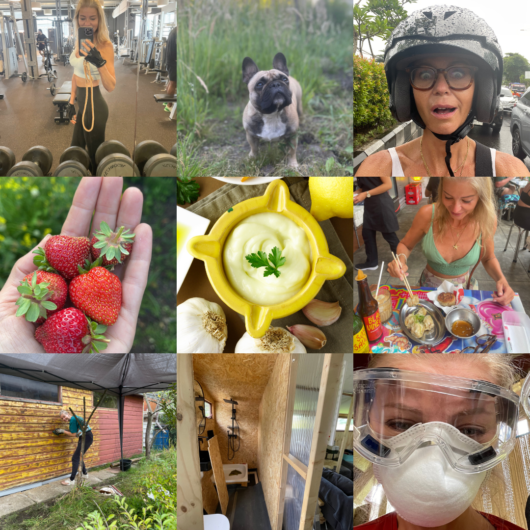 Ik hang drie keer per week aan de gewichten in de gym, ben graag, buiten in de zon en wandel graag met mijn Franse Bulldog, alleen niet te lang voor haar is half uurtje al genoeg.